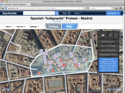 “憤怒的”西班牙馬德里街頭游行(Geofeedia截圖)