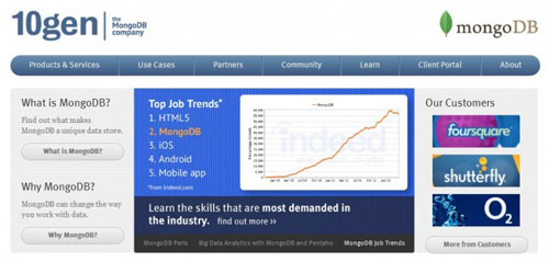 雖然10gen沒(méi)有提供具體的營(yíng)收數(shù)據(jù),但是根據(jù)公布的數(shù)據(jù)顯示,其銷(xiāo)售額在過(guò)去5年里呈每季度50%的速度增長(zhǎng)。與此同時(shí),到2011年初,其員工規(guī)模擴(kuò)大到130人。10gen的客戶(hù)包括了像Foursquare這樣的創(chuàng)業(yè)公司,以及通訊、金融與媒體領(lǐng)域的一些巨頭,付費(fèi)的客戶(hù)達(dá)到了500家。