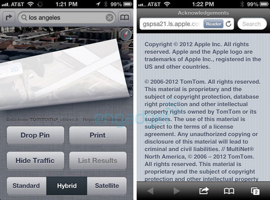 TomTom——這個早在2009 年就已經(jīng)在iOS上見到的導(dǎo)航軟件公司,就這樣直接在iOS6 Developer Beta地圖App中的協(xié)議內(nèi)容中出現(xiàn),也正式讓我們確認(rèn)了提供圖資的廠商。