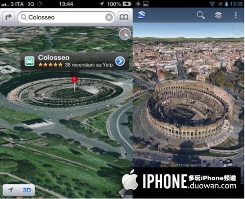 iOS6 3D地圖應(yīng)用與Google Earth對(duì)比