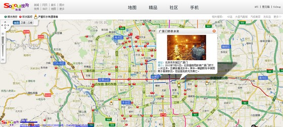 SOSO地圖在今天下午也通過其新浪微博官方帳號推廣了制作的“北京積水地圖”。在這幅地圖上,北京市容易積水的地點都用淡藍色的標記進行了標注。最重要的是,這幅積水地圖結合了SOSO地圖在街景方面的優(yōu)勢,只要用戶點擊某個標記時會顯示該地點的實景影像,并可以進行360度無死角地查看,使積水地點的地形一目了然,非常直觀。