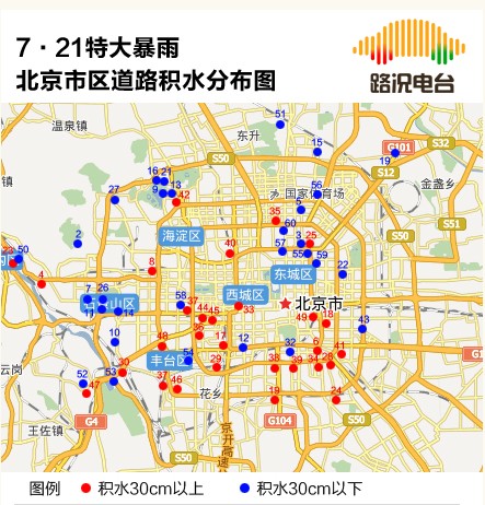百度地圖制作的“7.21北京暴雨積水分布圖”
