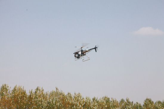 沈陽(yáng)大學(xué)購(gòu)進(jìn)的是一架小型無(wú)人直升機(jī),機(jī)身長(zhǎng)2.2米,旋翼2.5米。無(wú)人機(jī)是一種由無(wú)線遙控設(shè)備或由程序控制操縱的無(wú)人駕駛飛行器。與有人駕駛飛機(jī)相比,無(wú)人機(jī)具有成本低、效率高、靈活機(jī)動(dòng)等特點(diǎn)。目前這架無(wú)人機(jī)正在調(diào)試階段。
