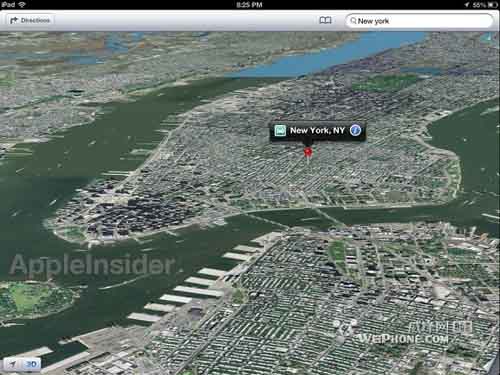 據國外媒體AppleInsider的試用,iOS 6在最新測試版當中添加了更多的3D城市地圖。