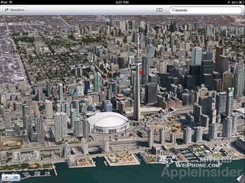蘋果向開發(fā)者發(fā)布了iOS 6 Beta 4,根據早前的報導我們知道的新改動有:移除Youtube、添加藍牙共享、Passbook應用添加App Store鏈接按鍵等(詳情)?,F據國外媒體AppleInsider的試用,iOS 6在最新測試版當中添加了更多的3D城市地圖——包括美國的費城、英國的曼徹斯特以及加拿大的多倫多等等。