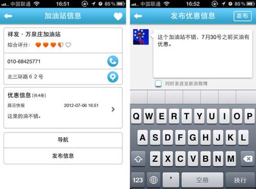 針對加油站和停車場,用戶可以自曝優(yōu)惠信息,哪里便宜就去哪里。