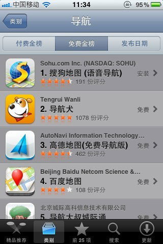 搜狗地圖iPhone版躍居免費語音導航應(yīng)用第一