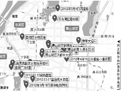 劫案頻發(fā) 網(wǎng)友自制"南昌防劫地圖"