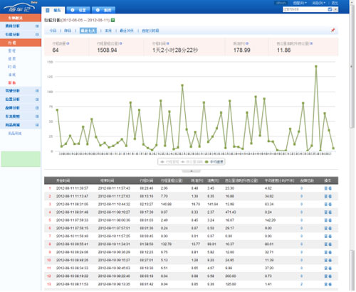 圍繞隨車記的OBD車載設(shè)備及其遠(yuǎn)程診斷分析管理平臺,隨車記提供了隨時到 (緊急救援、代駕服務(wù))、車秘書(保養(yǎng)、保險、年檢自動提醒)等九大功能,如上圖。孟凡剛表示,相比市面上的Wifi/藍(lán)牙解決方案,隨車記在記位置、管行程這兩個方面的表現(xiàn)更好。記位置在上文已有介紹,在此不再贅述。所謂“管行程”即是“分析每個行程所走的里程、平均速度、油耗、百公里油耗、費用等信息,行車更明細(xì)”——汽車的點火起動到關(guān)火視為一個行程,隨車記真正能做到“記錄并分析每個行程”。