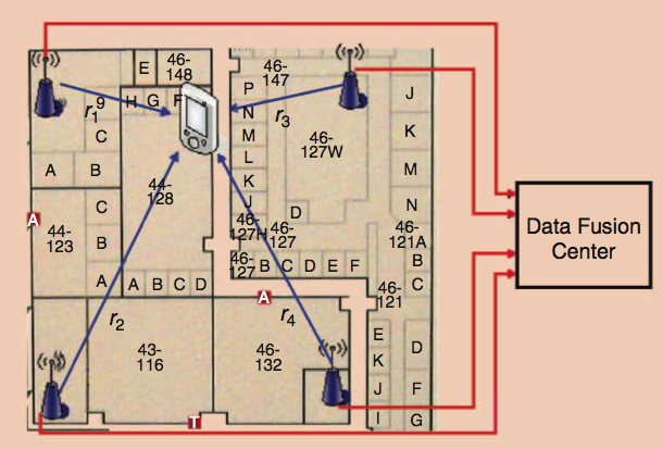 Wi-Fi定位技術(shù):無(wú)線(xiàn)局域網(wǎng)絡(luò)(WLAN)已是目前所有智能手機(jī)平臺(tái)的標(biāo)配了,利用廣泛普有的WIFI系統(tǒng)來(lái)做定位是一項(xiàng)低成本容易實(shí)現(xiàn)的技術(shù)。微軟開(kāi)發(fā)的RADAR 系統(tǒng)是最早的基于WiFi 網(wǎng)絡(luò)的定位系統(tǒng)。它采用射頻指紋匹配方法,從指紋庫(kù)中查找最接近的K 個(gè)鄰居,取它們坐標(biāo)的平均作為坐標(biāo)估計(jì)。室內(nèi)定位系統(tǒng)基于RSSI 信號(hào)的統(tǒng)計(jì)特性,采用貝葉斯公式,通過(guò)計(jì)算目標(biāo)位置的后驗(yàn)概率分布,來(lái)進(jìn)行定位。