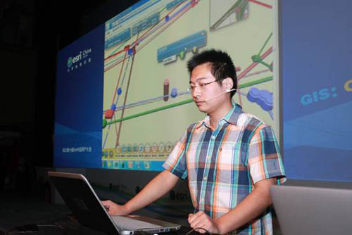 本次大會(huì)還首次邀請(qǐng)了學(xué)生代表登臺(tái)演講。演講人孫群是去年獲得Esri杯中國(guó)大學(xué)生GIS軟件開(kāi)發(fā)競(jìng)賽(簡(jiǎn)稱(chēng)“Esri開(kāi)發(fā)競(jìng)賽”)特等獎(jiǎng)的代表。他為大家現(xiàn)場(chǎng)演示了其獲獎(jiǎng)作品“Web城市地下管線管理系統(tǒng)”。