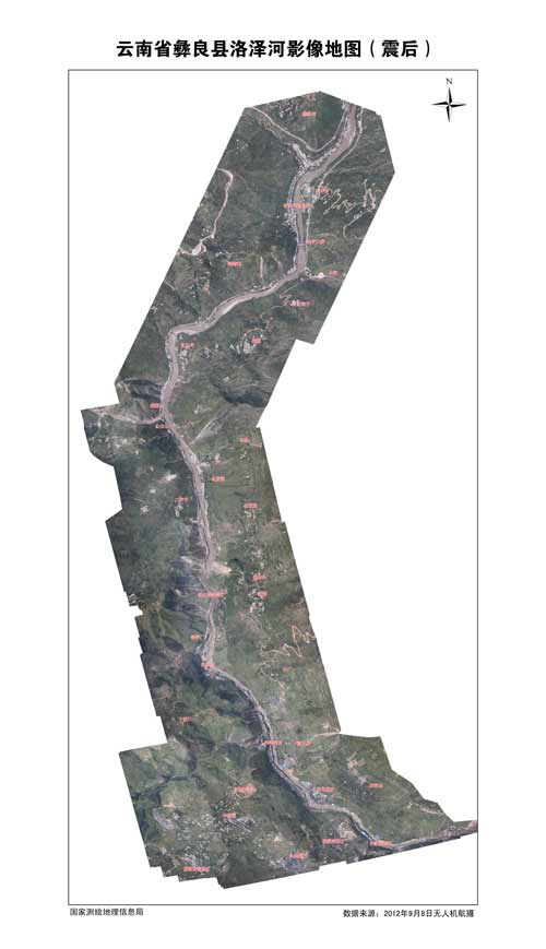 云南省測(cè)繪地理信息局于9月8日出動(dòng)無人機(jī)對(duì)災(zāi)害發(fā)生核心區(qū)域?qū)嵤┖脚?,獲取航拍單片164張,制作完成《洛澤河震后航拍影像圖》,同時(shí)還獲取20余平方公里高分辨率衛(wèi)星影像,已向省、市、縣抗震救災(zāi)指揮部門提供成果,用于救援指揮和災(zāi)情評(píng)估。