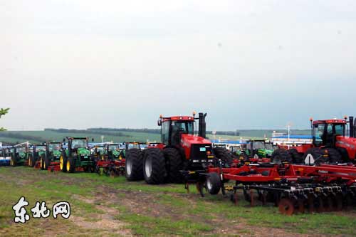 鶴山農(nóng)場大型農(nóng)機管理中心內(nèi)的數(shù)百臺大型機械