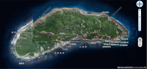 進入天地圖(tianditu.com)網(wǎng)站地圖界面,用戶點擊彈出的提示框就可以直接定位在釣魚島海域,查看此次更新的航空影像。同時,在三維模式下,還可以直接查看釣魚島、北小島、南小島的三維地形,非常逼真。