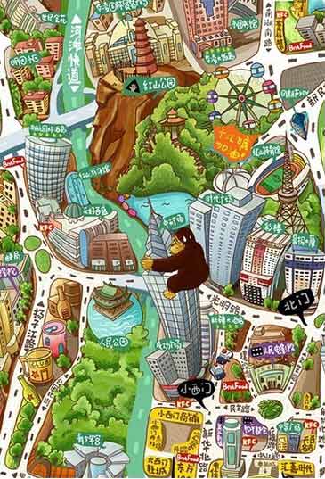 新疆青少年出版社美編室策劃羅羅說,國內有很多版本的城市地圖,但這對情侶的構思很別致,他們?yōu)榱藢⒌貓D畫得更有意思,僅草圖就修改了七八次。