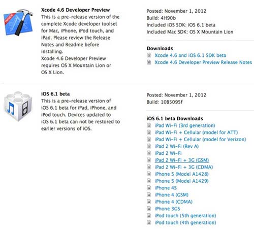 用戶(hù)可以從蘋(píng)果的開(kāi)發(fā)者網(wǎng)站下載β版iOS 6.1。知情人士稱(chēng),第一款β版iOS 6.1代號(hào)為“Build 10B5095f”。β版iOS 6.1支持iPhone 5、iPhone 4S、iPhone 4、iPhone 3GS,以及第二、三、四代iPad,第四、五代iPod touch。