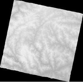 國外知名遙感影像處理軟件B 不提供建立連接點的模式,直接通過RPC文件建立立體像對的關系,生成DEM誤差較大。 2分30秒 如圖2,結果影像紋理較不清晰,高程起伏較小的地區(qū)沒有提取出來,影像放大后高程效果不明顯。