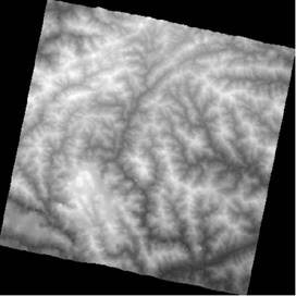圖2、國外知名遙感影像處理軟件B DEM 生成圖(左為全景影像,右為放大局部地區(qū))