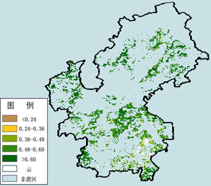2、-1<=NDVI<=1,負值表示地面覆蓋為云、水、雪等,對可見光高反射;0表示有巖石或裸土等;正值,表示有植被覆蓋,且隨覆蓋度增大而增大;