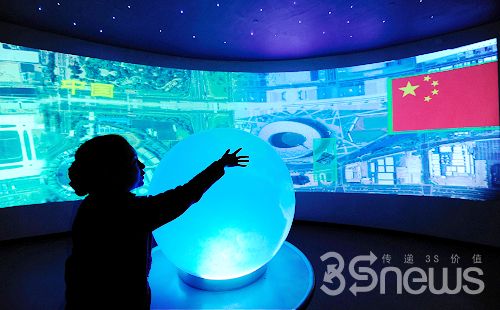 中國測繪創(chuàng)新基地“數(shù)字地球”展廳,工作人員正在展示“影像中國”系統(tǒng)