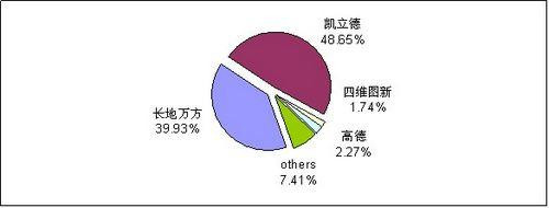 2010年4月13日,賽迪顧問在“2010中國消費(fèi)電子市場年會(huì)”上發(fā)布《2009-2010年中國GPS產(chǎn)業(yè)發(fā)展研究年度報(bào)告》顯示:2010注定是中國導(dǎo)航電子地圖行業(yè)發(fā)展的關(guān)鍵一年。據(jù)《報(bào)告》中的統(tǒng)計(jì)數(shù)字顯示,作為整個(gè)產(chǎn)業(yè)鏈核心的導(dǎo)航地圖行業(yè)格局并沒有發(fā)生太大變化,格局趨于穩(wěn)定。