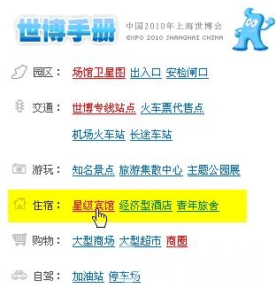在動身前往上海游覽世博會之前,我們可以先通過搜狗地圖的生活信息助手功能,了解一下上海的旅店分布情況。搜狗地圖世博手冊也提供了住宿信息檢索功能,我們可以通過它搜索世博園附近的賓館、酒店和旅社,在出行之前先解決好住宿問題,以便方便游覽世博會: