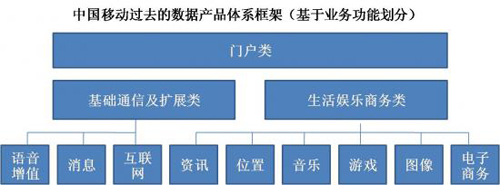 圖八:中國移動(dòng)過去的數(shù)據(jù)產(chǎn)品體系框架(基于業(yè)務(wù)功能劃分)
