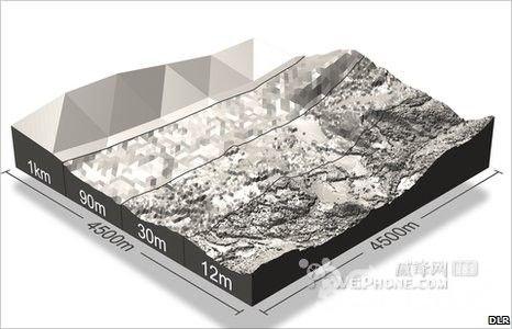 SRTM頂端的數(shù)字高程模型(DEM),有30×30米空間分辨率,垂直分辨率則是16米到10米。