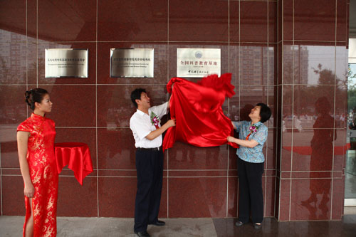 國(guó)家測(cè)繪局徐德明局長(zhǎng)和中國(guó)科協(xié)書記處程?hào)|紅書記共同為全國(guó)科普教育基地揭牌