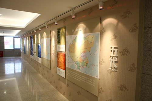 地圖展廳位于科技館三層回廊。在這里,按照時(shí)間順序,整齊排列著我國(guó)古代地圖珍品,展現(xiàn)了我國(guó)各個(gè)朝代的疆域變遷,用地圖的革新與沿襲見證了中國(guó)歷史的發(fā)展歷程以及測(cè)繪的發(fā)展、科技的進(jìn)步、文化的傳承。整個(gè)地圖展廳共繪有25幅疆域圖,分屬不同朝代。疆域圖采用了現(xiàn)在的境界、地名作為參考,用灰色畫出。最上一個(gè)層面是以現(xiàn)代歷史觀畫出的當(dāng)時(shí)的疆域。所有25張疆域圖除唐等個(gè)別朝代外,均采用了統(tǒng)一的范圍,便于參觀者了解中華民族的發(fā)展和疆域的變遷。展區(qū)內(nèi)循環(huán)播放的電視專題片《地圖見證歷史》與《秦并六國(guó)》等互動(dòng)游戲無不讓參觀者深刻地進(jìn)行了一次愛國(guó)主義教育。