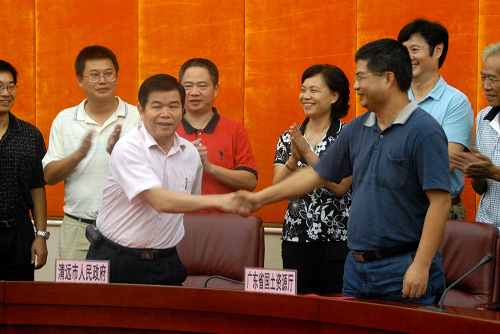 9月15日,廣東省國土資源廳在清遠(yuǎn)市舉行數(shù)字清遠(yuǎn)地理空間框架建設(shè)工程設(shè)計書暨共建共享協(xié)議簽署儀式。廣東省國土資源廳副廳長李俊祥,清遠(yuǎn)市市委常委、副市長溫鏡潮出席儀式,代表雙方在協(xié)議書上簽字并講話。
