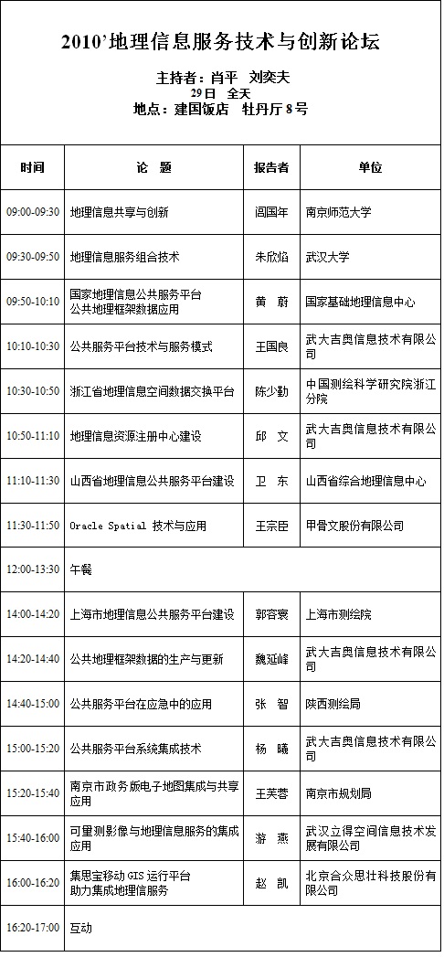 2010'地理信息服務(wù)技術(shù)與創(chuàng)新論壇日程