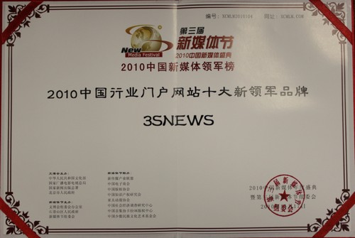 3sNews榮獲“2010中國行業(yè)門戶網(wǎng)站十大新領(lǐng)軍品牌”