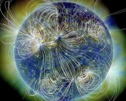 如圖,這是科學(xué)家第一次繪制太陽磁場地圖,從而揭示了太陽活動的關(guān)聯(lián)性,以及太陽海嘯的整體一致性。這也是第一次證實太陽耀斑之間的聯(lián)系。