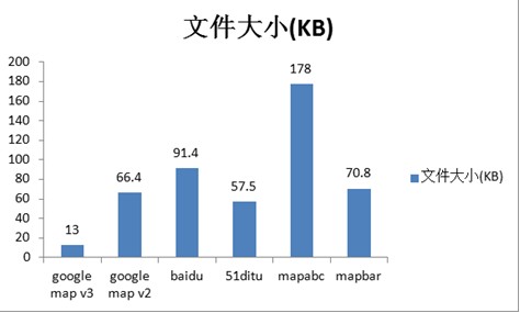 1)文件大小對比(說明:每個地圖API廠商取最全的免費(fèi)功能部分進(jìn)行測試,大小為經(jīng)過gzip壓縮之后的)
