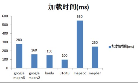 2)加載時間對比(說明:每個地圖API廠商取最全的免費(fèi)功能部分進(jìn)行測試,加載時間包括腳本下載、解析和執(zhí)行的時間,瀏覽器環(huán)境為IE8)