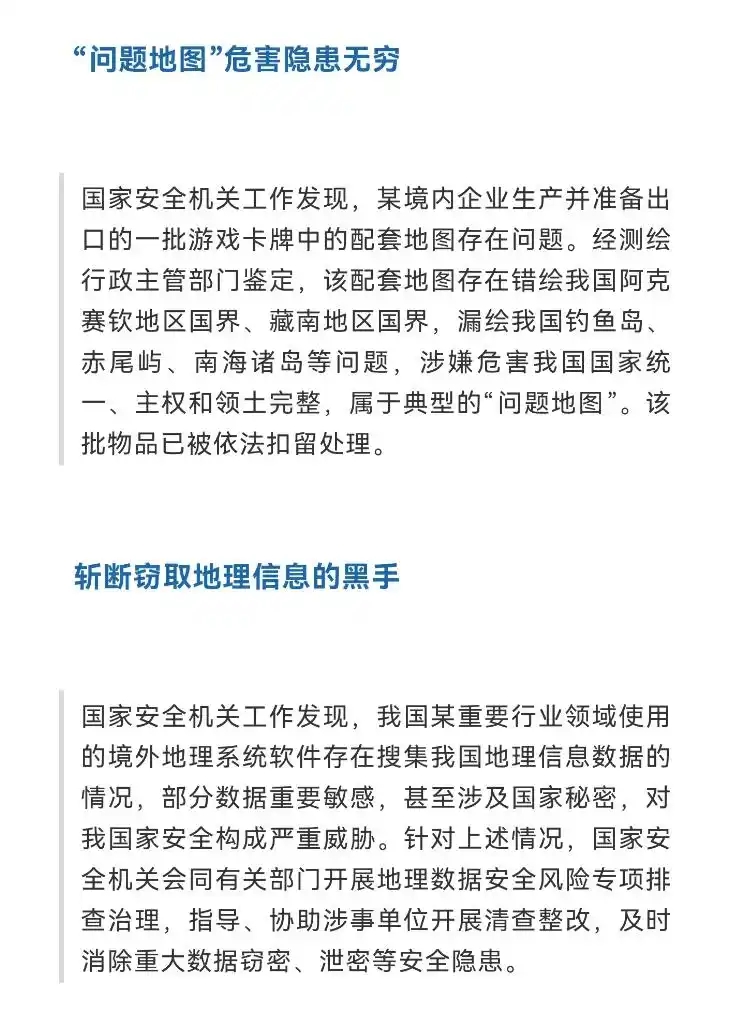 某境外地理系統(tǒng)軟件搜集我國(guó)地理信息數(shù)據(jù),部分?jǐn)?shù)據(jù)重要敏感,甚至涉及國(guó)家秘密,國(guó)安部提醒謹(jǐn)防地理信息泄密
