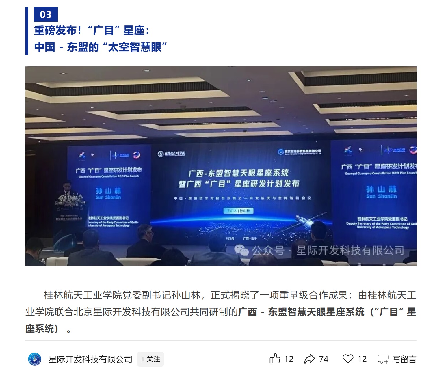 公開消息顯示,“廣目”星座系統(tǒng)由桂林航天工業(yè)學(xué)院聯(lián)合北京星際開發(fā)科技有限公司(簡(jiǎn)稱:“星際開發(fā)公司”)共同研制,錨定廣西-東盟定制軌道及載荷設(shè)計(jì),由60余顆多類型高性能衛(wèi)星協(xié)同運(yùn)行,實(shí)現(xiàn)“高效響應(yīng)、服務(wù)東盟、全球覆蓋”的核心目標(biāo)。