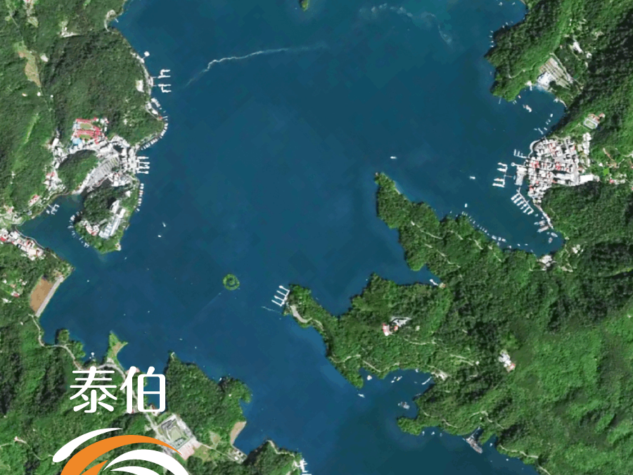 太空俯瞰日月潭,“日輪” 與 “月鉤” 形態(tài)清晰可見,湖面如翡翠鑲嵌在群山之間,周邊村落零星分布,盡顯臺(tái)灣省標(biāo)志性自然景觀的靜謐與壯闊。